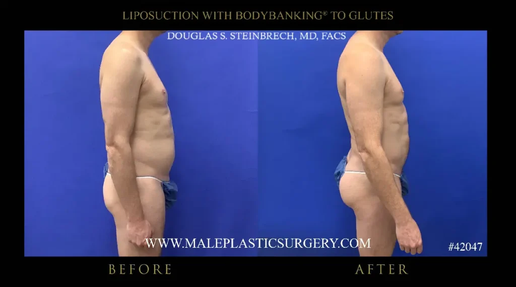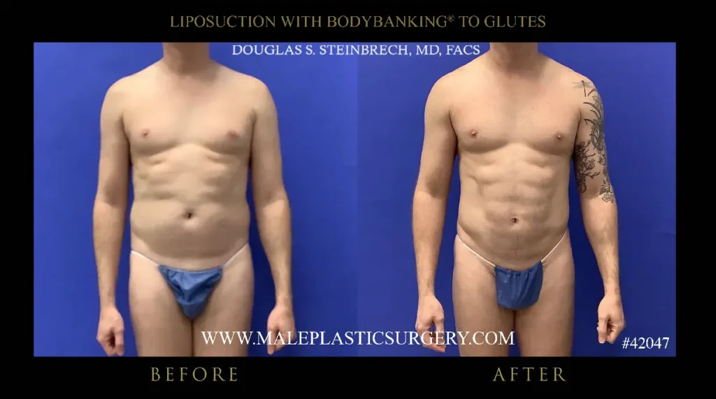 Developed by Dr. Steinbrech, BodyBanking ® is an autologous fat transfer procedure that sets him apart as a top specialist in male plastic surgery. Consistent results are achieved through designated areas for fat removal, proper fat-purification techniques, and precise fat placement into the body. The first step of the procedure involves selective fat transfer during liposuction, preventing any potential for disproportionate growth if a patient gains weight. By carefully controlling the density of fatty tissue, Dr. Steinbrech can create natural-looking enhancements with reduced risk of future complications.